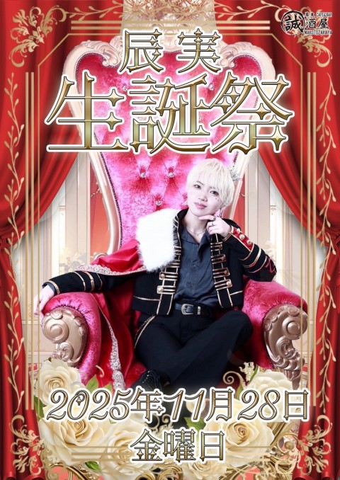 11月28日(金曜日) ・璃津 17-23 ・文哉 17-23 ・呂久 17-23 ・辰実 17-23 ・蘭丸 17-22 辰実@tatsumi_makotoz 生誕祭を開催いたします🎊✨ ご予約のお客様から優先して、ご案内いたします🏯🌕 #秋葉原 #男装カフェ #誠酒屋 #14周年 #男装バイト #コンカフェ求人 #和装 #コンカフェ #男装 https://t.co/jcdle61m48