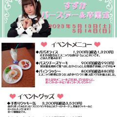 5月13日(土) 本日はすずかBDイベントです🎀🎀🎀 通常のメイド服ではなく、特別衣装でのお給仕となりますので、ご注意ください😊 特別メニューやグッズもご用意しておりますので、 ぜひゲットしてくださいね♪ https://t.co/p4ly4qYGwu