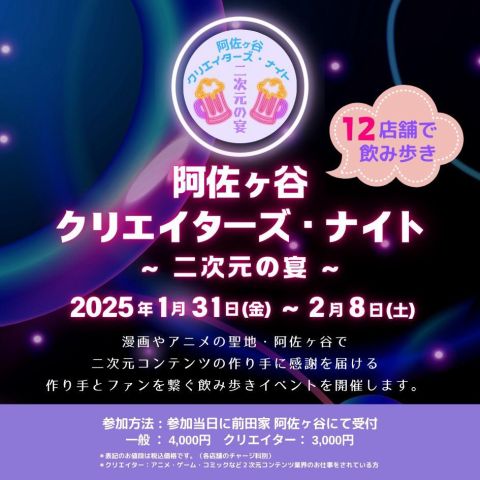 本日1/31(金-2/8(土)たで阿䜐ヶ谷クリ゚むタヌズ・ナむトがはじたりたす