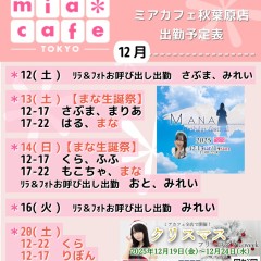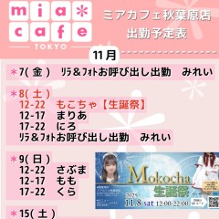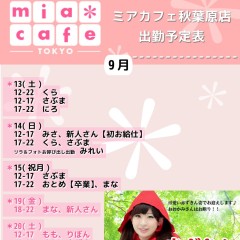 | 営業時間 | 12:00〜22:00(最終受付21:20) 定休日 不定休 深夜営業については、公式ページ右上の深夜営業日案内を ご覧ください(金曜・土曜日を中心に深夜営業予定)。 深夜営業対象日 22:00〜翌朝5:00(最終受付 翌朝4:20) http://market.chu.jp/schedule1/sche37.cgi ミアグループ総合スケジュール(PC&スマホ) http://market.chu.jp/schedule1/sche37.cgi?dm=1 ミアグループ総合スケジュール(ガラケー) 告知日のみ営業となります。告知日以外は深夜営業いたしておりません。 | ||||||||||||||