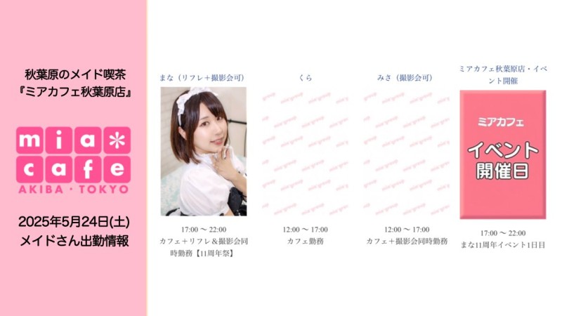 👑本日5月24日(土)のミアカフェ秋葉原店