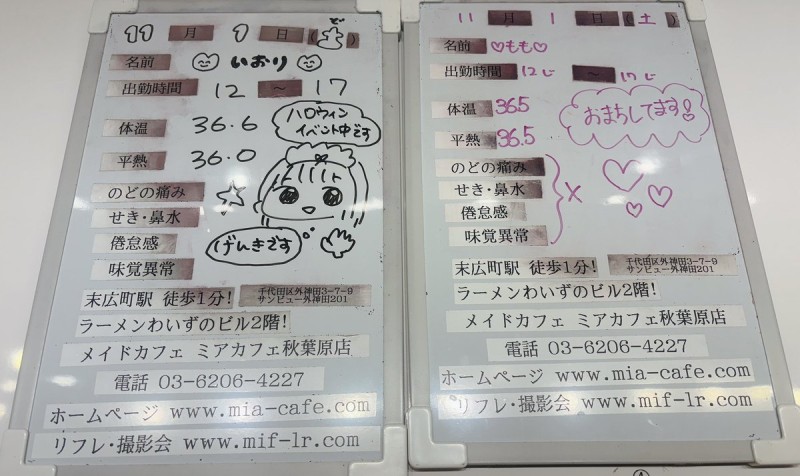 👑本日11月7日(金)の総合案内👑 🎀ミアカフェ秋葉原店🎀 おやすみ→次回は11/8(土)、9(日) 🎀ミアカフェ山梨店🎀 おやすみ→次回は11/9(日) 🎀ミアカフェ浜松店🎀 おやすみ→次回は11/8(土)、10(月) 🎀ミアカフェ静岡店🎀 おやすみ→次回は11/8(土)、9(日) #メイドカフェ https://t.co/ELKuDUVll6