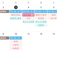 | 営業時間 | 月〜木18:00~23:30 金18:00~5:00 土17:00~5:00 日17:00~23:30 | ||||||||||||||