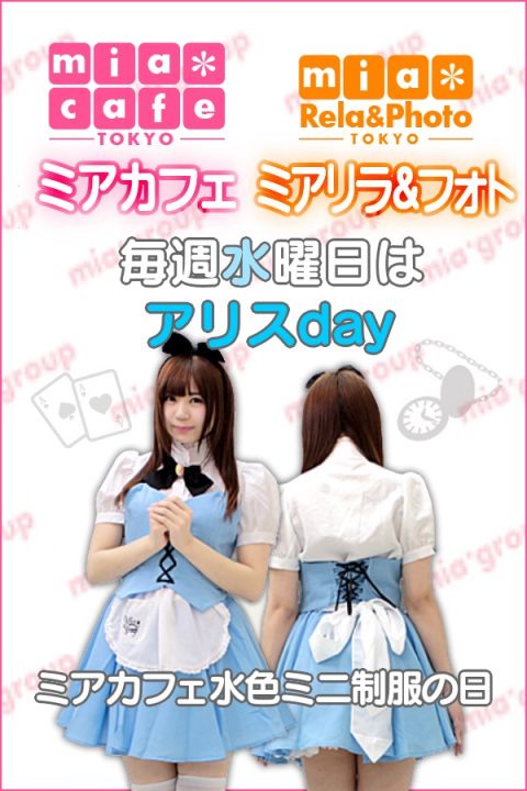 | å¶æ¥æé | âãã¢ã«ãã§æ±äº¬åºïŒã¡ã€ãã«ãã§ïŒhttp://www.mia-cafe.com/ãâ â¡å¹³æ¥ãæïœéãïŒïŒïŒïŒïŒïœïŒïŒïŒïŒïŒ â¡åæã»æ¥æã»ç¥æ¥ãïŒïŒïŒïŒïŒïœïŒïŒïŒïŒïŒ â å®äŒæ¥ããªãïŒ2019幎1æããå®äŒæ¥å»æ¢ïŒ â¡ã©ã¹ããªãŒããŒãéåºã®ïŒïŒåå ãïŒïŒïŒïŒïŒéåºã®å ŽåâïŒïŒïŒïŒïŒã©ã¹ããªãŒããŒ å¶æ¥æ¥ãåºå€ç¶æ³ã«ã€ããŠã¯ãã¡ãã http://pandaland.cutegirl.jp/mif/c_cms_csv/sch_top.php âãã¢ãªã©ïŒãã©ãæ±äº¬åºïŒæ®åœ±äŒïŒãªãã¬ïŒhttp://www.mif-lr.com/ãâ â¡å šæ¥ãïŒïŒïŒïŒïŒãïŒïŒïŒïŒïŒãã§ãããªã©ã¯ãŒãŒã·ã§ã³åºå€ã¹ã¿ãããããæé垯ã®ã¿å¶æ¥ã§ãã â å®äŒæ¥ã¯äžå®äŒïŒåºå€ã¹ã¿ãããããæé垯ã®å¶æ¥ïŒ â¡æçµåä»ãéåºã®ïŒïŒåå ãïŒïŒïŒïŒïŒéåºã®å ŽåâïŒïŒïŒïŒïŒïŒïŒïŒïŒïŒïŒè¿ã«æœè¡æéãçµããã³ãŒã¹ïŒ â»é«æ ¡çäžå¯ âæ·±å€å¶æ¥ã«ã€ããŠã¯ãå ¬åŒãµã€ãå³äžã® http://market.chu.jp/schedule1/sche37.cgi ãã¢ã°ã«ãŒãç·åã¹ã±ãžã¥ãŒã«ïŒïŒ°ïŒ£ã»ã¹ããïŒ http://market.chu.jp/schedule1/sche37.cgi?dm=1 ãã¢ã°ã«ãŒãç·åã¹ã±ãžã¥ãŒã«ïŒã¬ã©æºåž¯ïŒ ãã芧ãã ãããåç¥æ¥ã®ã¿å¶æ¥ãšãªããŸããåç¥æ¥ä»¥å€ã¯æ·±å€å¶æ¥ããããŠãããŸããã æ·±å€å¶æ¥å¯Ÿè±¡æ¥ãïŒïŒïŒïŒïŒãç¿æïŒïŒïŒïŒïŒïŒ¬ïŒïŒ¯ïŒïŒïŒïŒïŒïŒ | ||||||||||||||