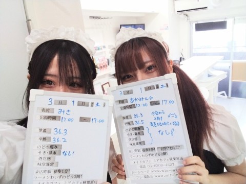 | 営業時間 | ●ミアカフェ東京店(メイドカフェ)http://www.mia-cafe.com/ ● □平日 月~金 17:00~22:00 □土曜・日曜・祝日 12:00~22:00 ★定休日 なし(2019年1月より定休日廃止) □ラストオーダー 閉店の60分前 22:00閉店の場合→21:00ラストオーダー 営業日や出勤状況についてはこちら。 http://pandaland.cutegirl.jp/mif/c_cms_csv/sch_top.php ●ミアリラ&フォト東京店(撮影会&リフレ)http://www.mif-lr.com/ ● □全日 12:00〜22:00 ですがリラクゼーション出勤スタッフがいる時間帯のみ営業です。 ★定休日は不定休(出勤スタッフがいる時間帯の営業) □最終受付 閉店の45分前 22:00閉店の場合→21:15(21:50迄に施術時間が終わるコース) ※高校生不可 ●深夜営業については、公式サイト右上の http://market.chu.jp/schedule1/sche37.cgi ミアグループ総合スケジュール(PC・スマホ) http://market.chu.jp/schedule1/sche37.cgi?dm=1 ミアグループ総合スケジュール(ガラ携帯) をご覧ください。告知日のみ営業となります。告知日以外は深夜営業いたしておりません。 深夜営業対象日 22:00〜翌朝5:00(L.O.4:00) | ||||||||||||||