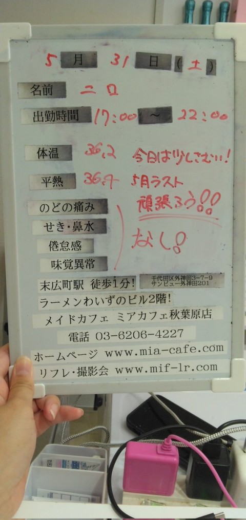 | 営業時間 | ●ミアカフェ東京店(メイドカフェ)http://www.mia-cafe.com/ ● □平日 月~金 17:00~22:00 □土曜・日曜・祝日 12:00~22:00 ★定休日 なし(2019年1月より定休日廃止) □ラストオーダー 閉店の60分前 22:00閉店の場合→21:00ラストオーダー 営業日や出勤状況についてはこちら。 http://pandaland.cutegirl.jp/mif/c_cms_csv/sch_top.php ●ミアリラ&フォト東京店(撮影会&リフレ)http://www.mif-lr.com/ ● □全日 12:00〜22:00 ですがリラクゼーション出勤スタッフがいる時間帯のみ営業です。 ★定休日は不定休(出勤スタッフがいる時間帯の営業) □最終受付 閉店の45分前 22:00閉店の場合→21:15(21:50迄に施術時間が終わるコース) ※高校生不可 ●深夜営業については、公式サイト右上の http://market.chu.jp/schedule1/sche37.cgi ミアグループ総合スケジュール(PC・スマホ) http://market.chu.jp/schedule1/sche37.cgi?dm=1 ミアグループ総合スケジュール(ガラ携帯) をご覧ください。告知日のみ営業となります。告知日以外は深夜営業いたしておりません。 深夜営業対象日 22:00〜翌朝5:00(L.O.4:00) | ||||||||||||||