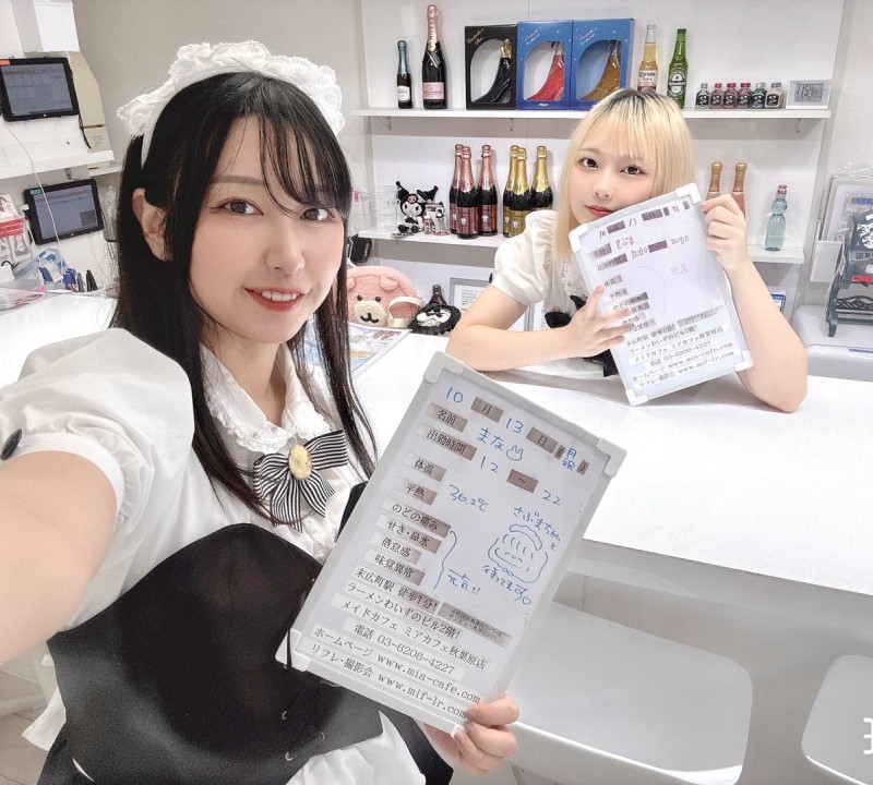 | 営業時間 | ●ミアカフェ東京店(メイドカフェ)http://www.mia-cafe.com/ ● □平日 月~金 17:00~22:00 □土曜・日曜・祝日 12:00~22:00 ★定休日 なし(2019年1月より定休日廃止) □ラストオーダー 閉店の60分前 22:00閉店の場合→21:00ラストオーダー 営業日や出勤状況についてはこちら。 http://pandaland.cutegirl.jp/mif/c_cms_csv/sch_top.php ●ミアリラ&フォト東京店(撮影会&リフレ)http://www.mif-lr.com/ ● □全日 12:00〜22:00 ですがリラクゼーション出勤スタッフがいる時間帯のみ営業です。 ★定休日は不定休(出勤スタッフがいる時間帯の営業) □最終受付 閉店の45分前 22:00閉店の場合→21:15(21:50迄に施術時間が終わるコース) ※高校生不可 ●深夜営業については、公式サイト右上の http://market.chu.jp/schedule1/sche37.cgi ミアグループ総合スケジュール(PC・スマホ) http://market.chu.jp/schedule1/sche37.cgi?dm=1 ミアグループ総合スケジュール(ガラ携帯) をご覧ください。告知日のみ営業となります。告知日以外は深夜営業いたしておりません。 深夜営業対象日 22:00〜翌朝5:00(L.O.4:00) | ||||||||||||||
