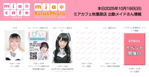 👑本日10月19日(日)のミアカフェ秋葉原店