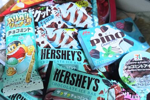 こんにちは、マイです('◇')ゞ 暑い日は冷たい物が食べたくなりますね… これが、我が家の冷凍庫のアイスたちです(;^ω^) 選べるチョコミントアイス…今日は何食べよう… 本日もご帰宅お待ちしております… #メイド #チョコミント https://t.co/C81Os11Fad